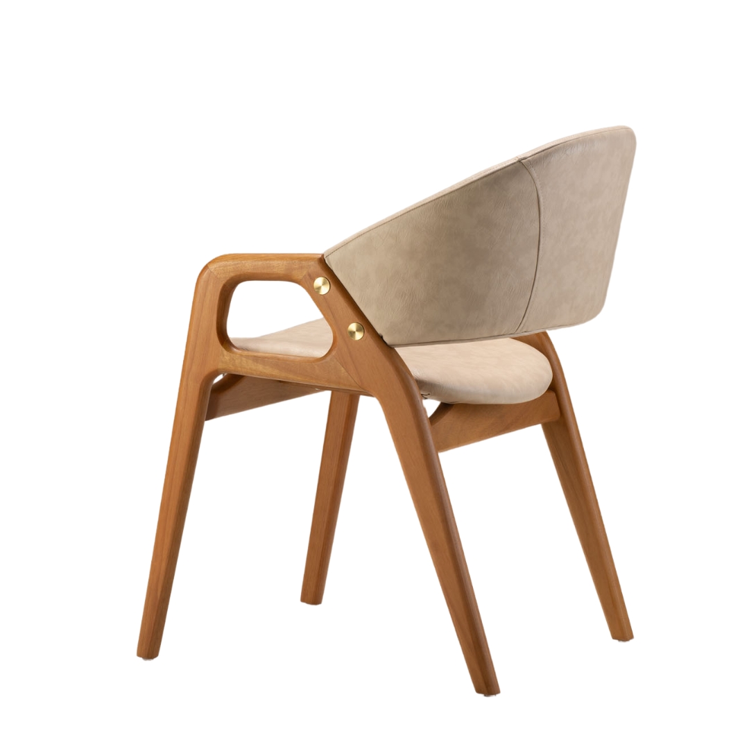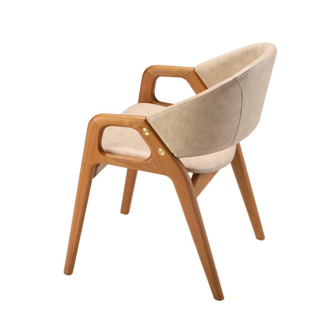 The Eclipse chair, designed by Luiz Bossardi, also This alignment is reflected through the side detail. which refers to the shape of the phenomenon. Just like in celestial processes that require alignment perfect for the eclipse to happen, each piece of The Eclipse set goes through production processes. Careful consideration is given to the design, resulting in a unique ensemble that combines symbolism, elegance, and functionality.