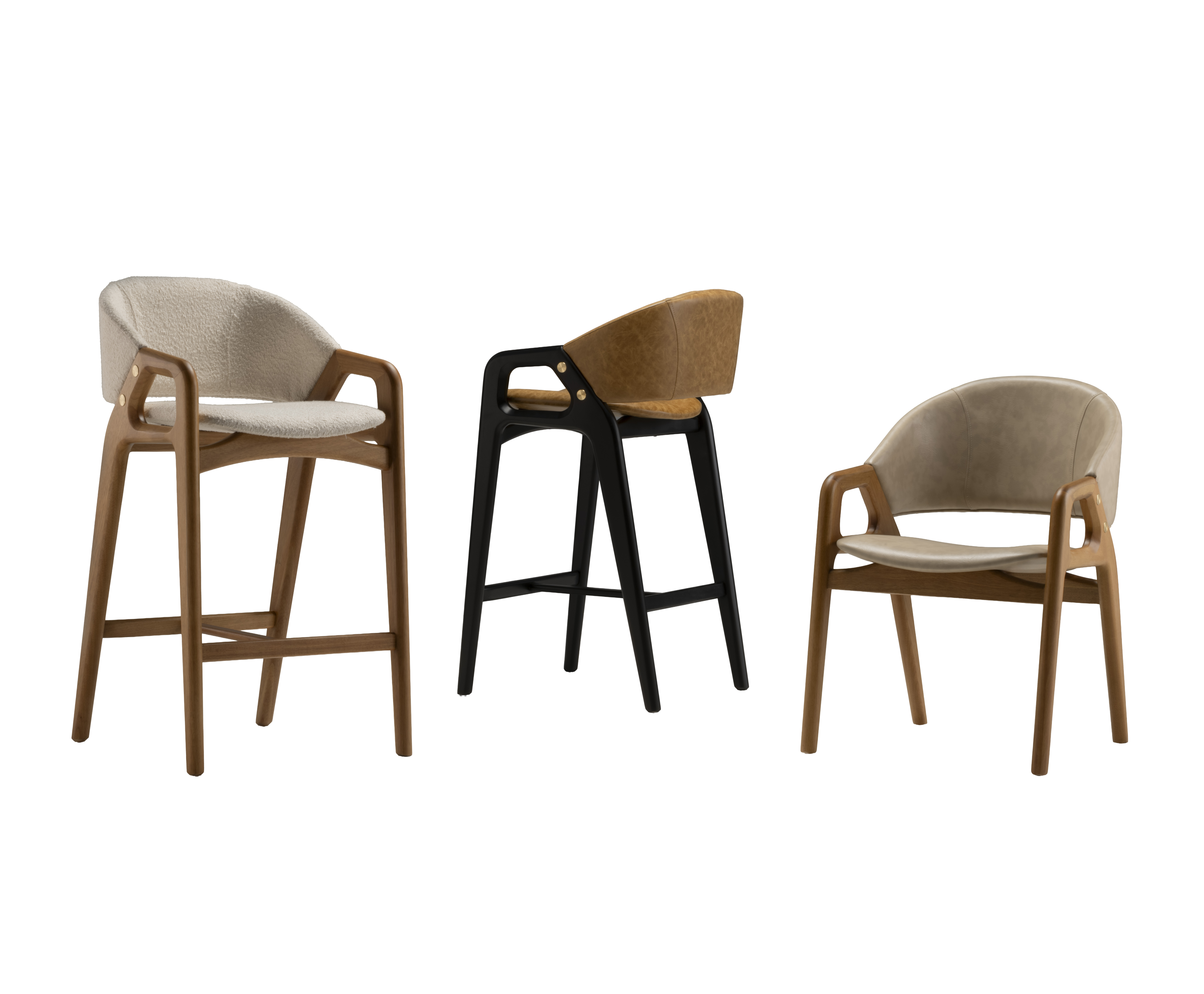 The Eclipse stool, designed by Luiz Bossardi, also reflects this alignment through its side detail that evokes the shape of the phenomenon. Just as celestial processes require perfect alignment for an eclipse to occur, each piece in the Eclipse collection undergoes careful production processes, resulting in a unique set that combines symbolism, elegance, and functionality.