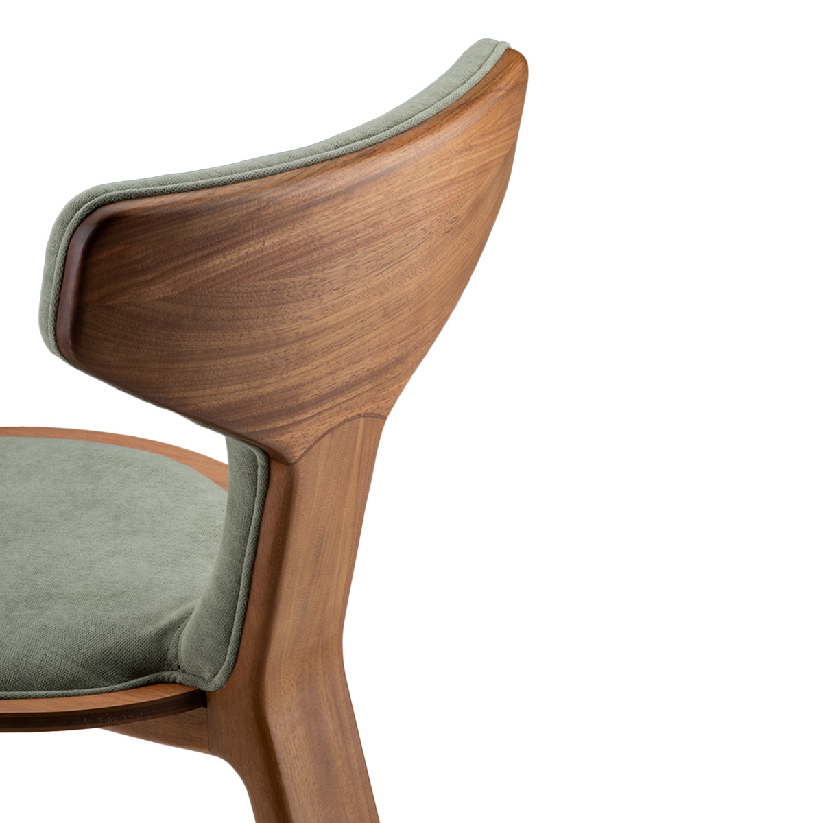The Singular chair balances art and utility in a minimalist design that values every line and every detail. Lightweight and visually striking, its bold structure explores the dialogue between solids and voids, integrating space into the design itself. The wood, crafted with artisanal precision, takes center stage, showcasing the purity of the material in its most refined form. Its sculptural silhouette does not merely accommodate; it asserts presence and authenticity, becoming a focal point in any environment. More than a functional piece of furniture, it is a statement: an original creation that celebrates the essential, balance, and timeless elegance.